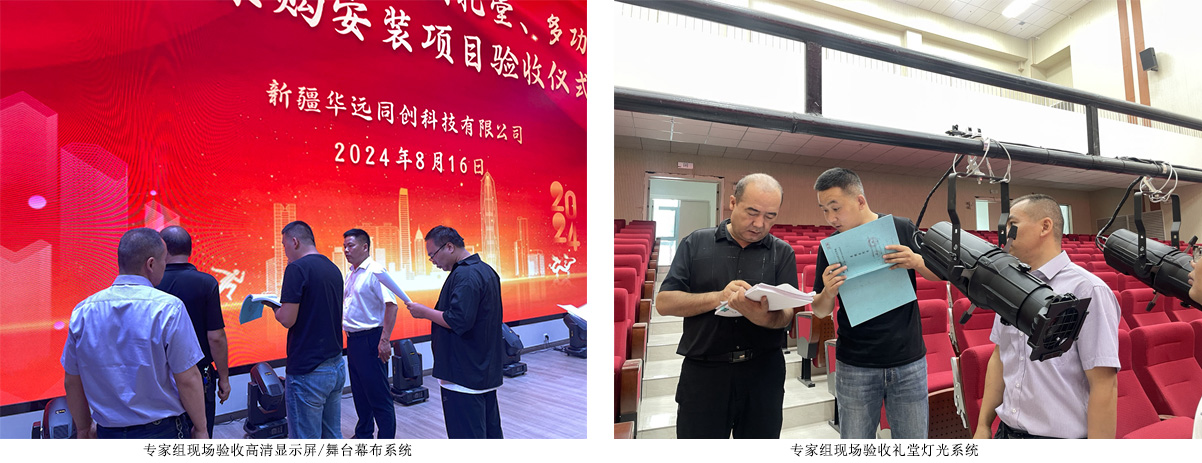2024年8月16日,由新疆華遠同創(chuàng)科技有限公司承建的巴州衛(wèi)校新校區(qū)一期禮堂、3間多功能廳設(shè)備采購安裝項目,經(jīng)過驗收流程,通過了竣工驗收!本次驗收專家組由新疆巴音郭楞蒙古自治州衛(wèi)生學校、新疆科技學院等單位的領(lǐng)導(dǎo)及專家共同組成。驗收組通過聽取匯報、現(xiàn)場察看以及逐一核對項目資料等方式,在充分討論和實地審核的基礎(chǔ)上,認為我方交付的項目的質(zhì)量、舞臺機械升降、視聽效果等各個系統(tǒng)達到了設(shè)計標準和要求,符合使用需求,一致同意通過驗收!